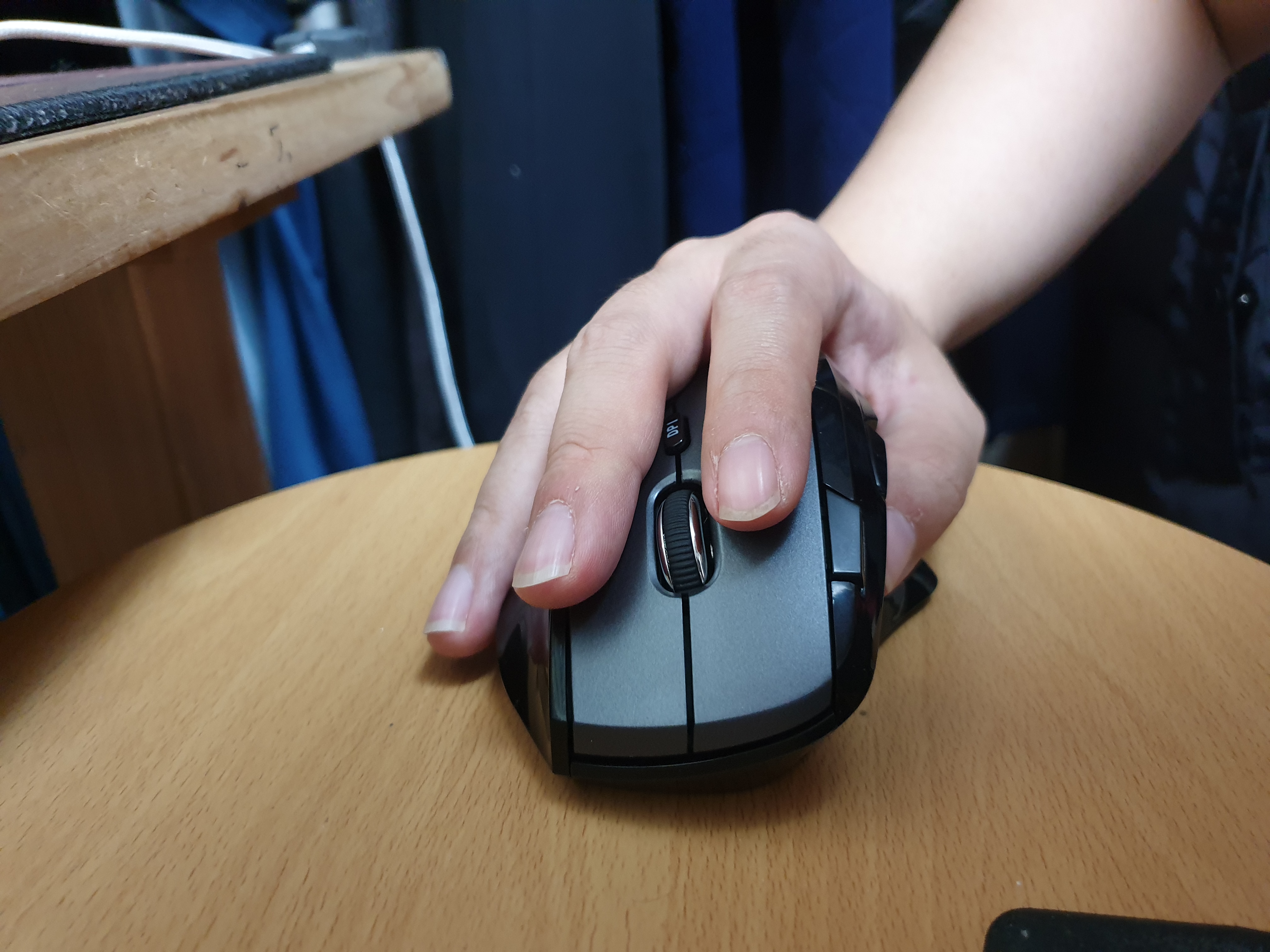 마우스를 파지할 때 크기는 큰 문제가 없는데 문제는 애들이 이 제품 높이를 상당히 높게 만들어서 손이 상당히 불편하다.