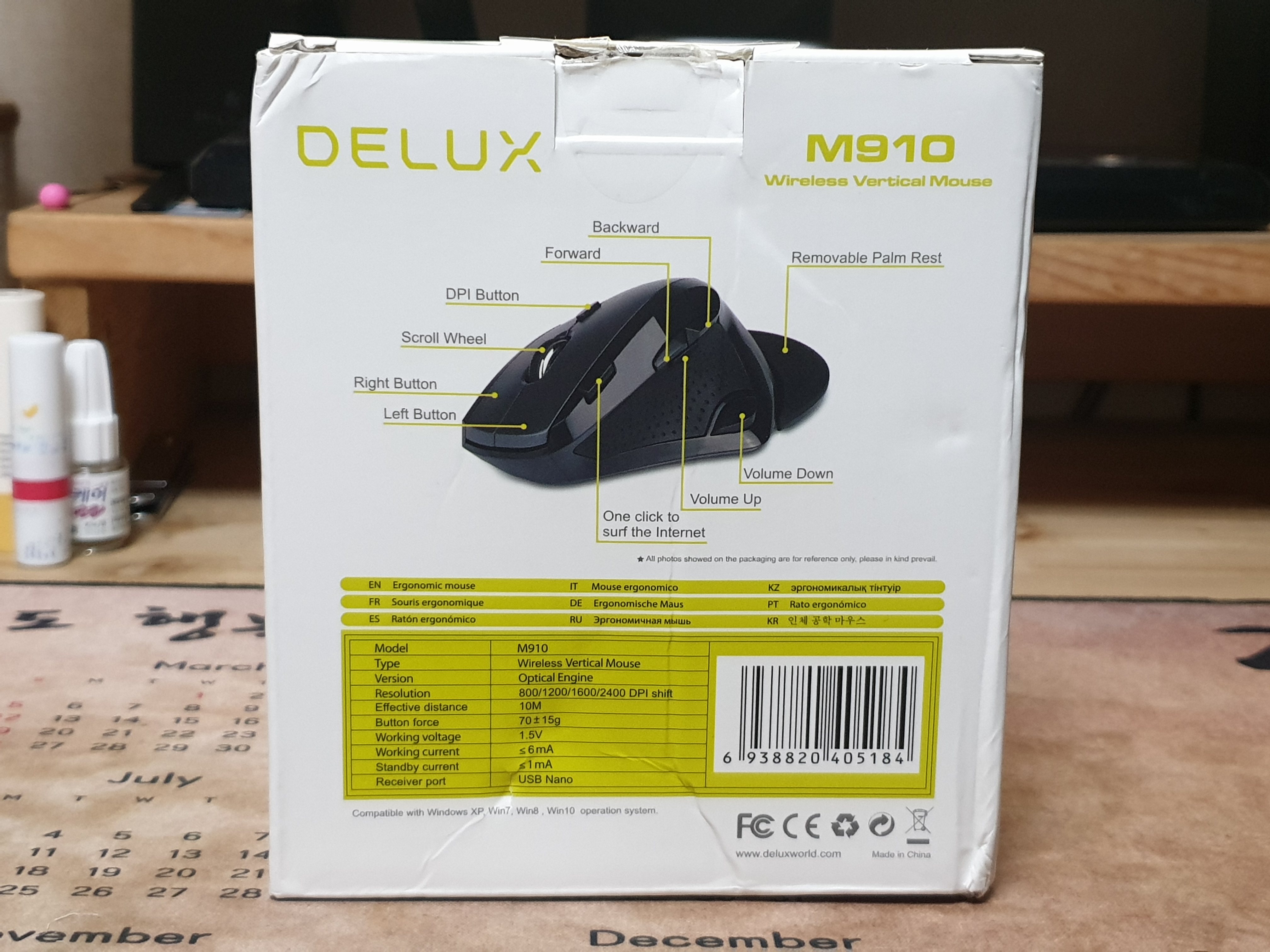 Delux사의 제품으로 만듦새는 좋은데 버티컬 마우스로의 근본적인 게 뭔가 빠져있어서 나를 당황하게 했던 그 회사.