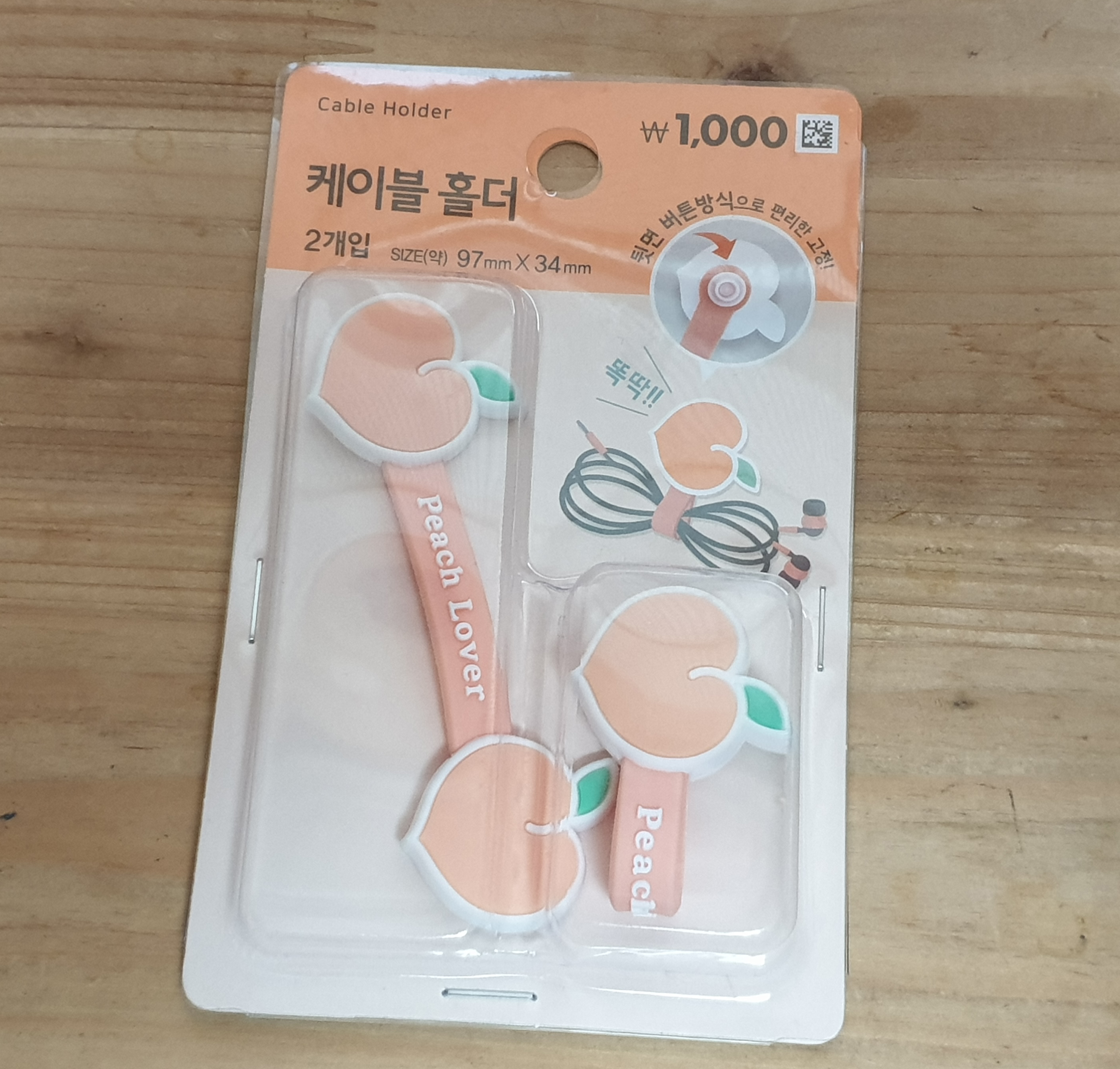 복숭아 모양이 달린 이어폰 선 정리줄을 어떻게 쓰냐 하면