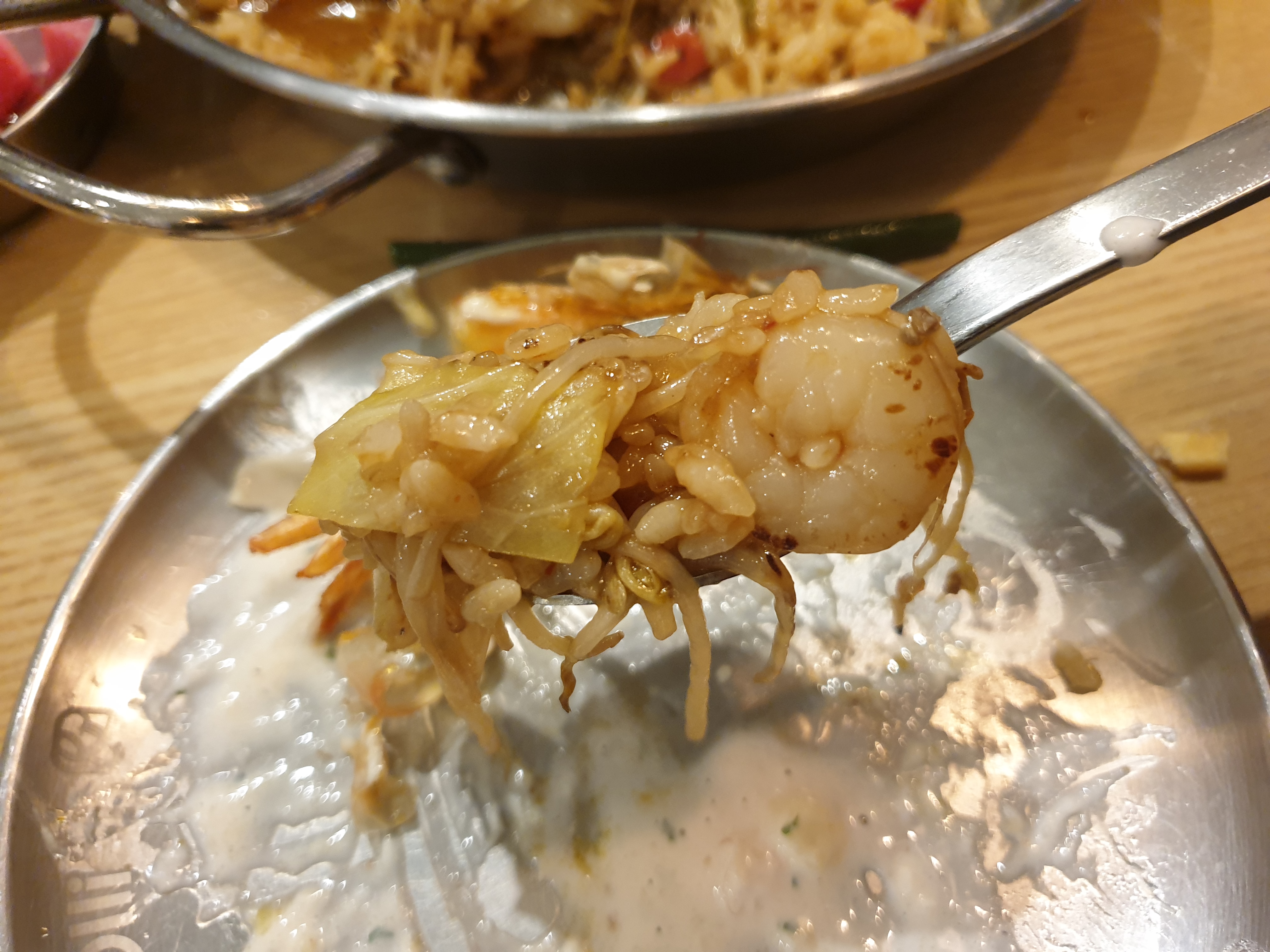 자세히 보니까 위에 숙주들이 올라가 있어서 약간 아삭함이 느껴지고 밥에선 해산물 맛이 난다.