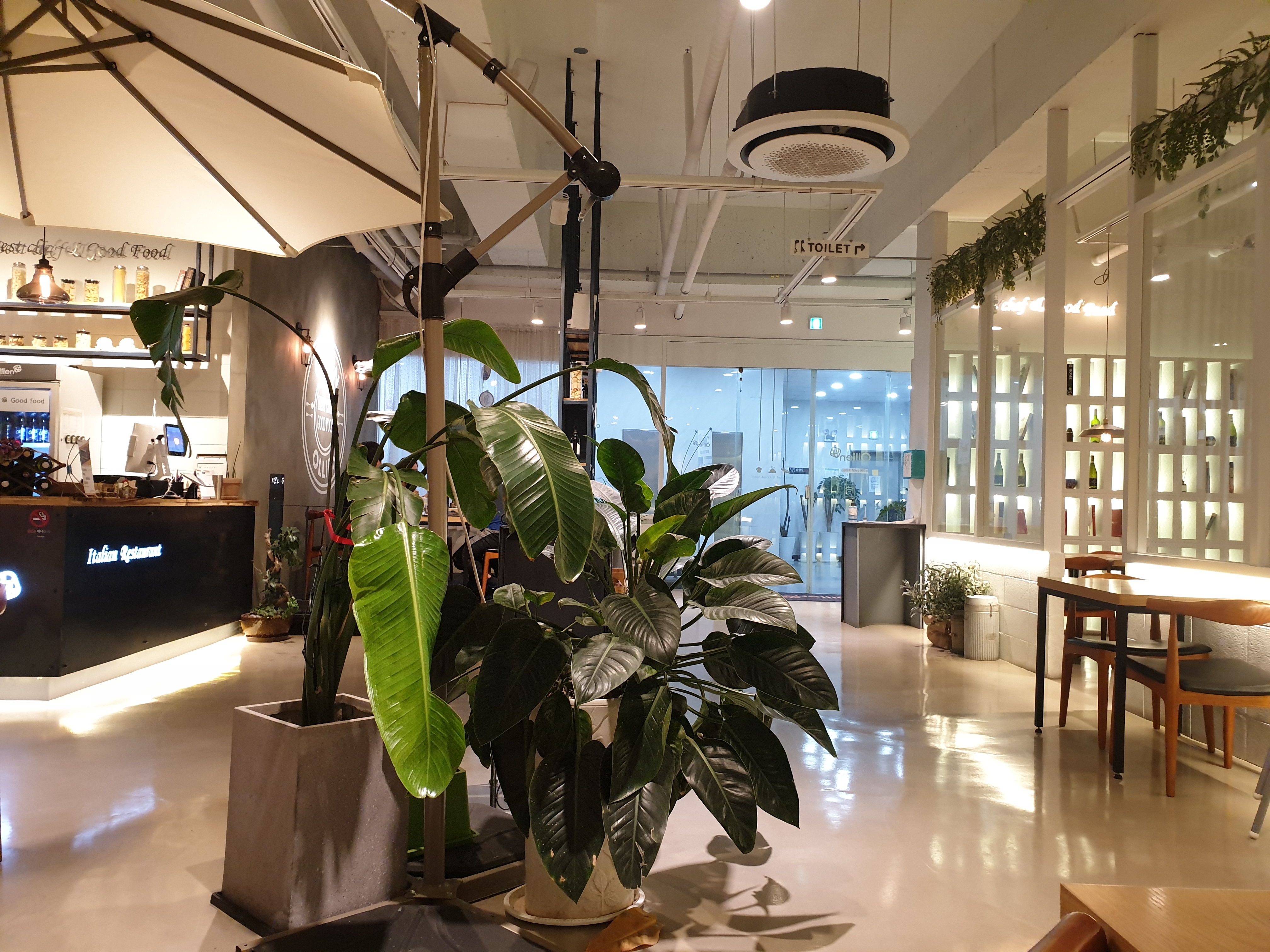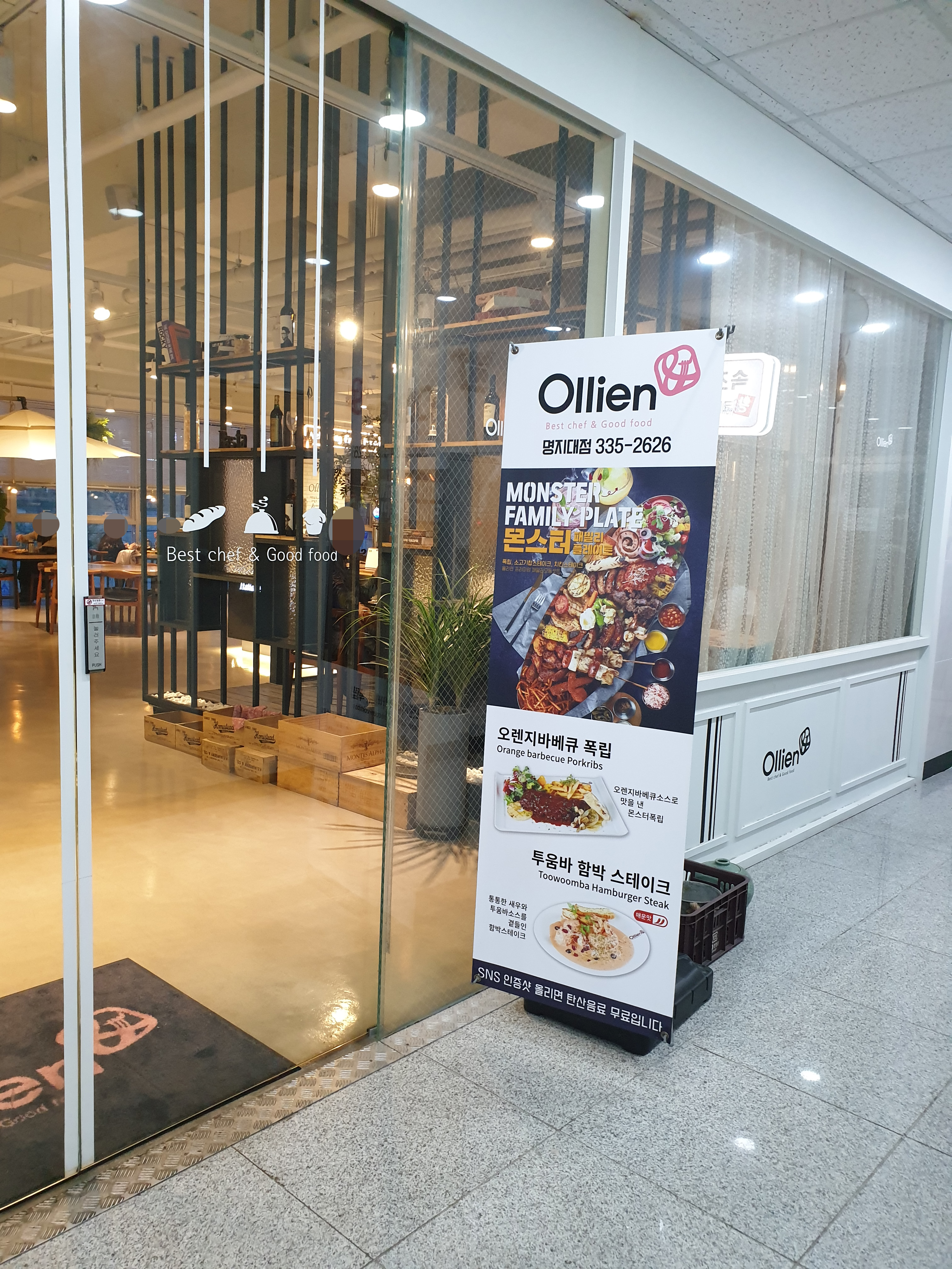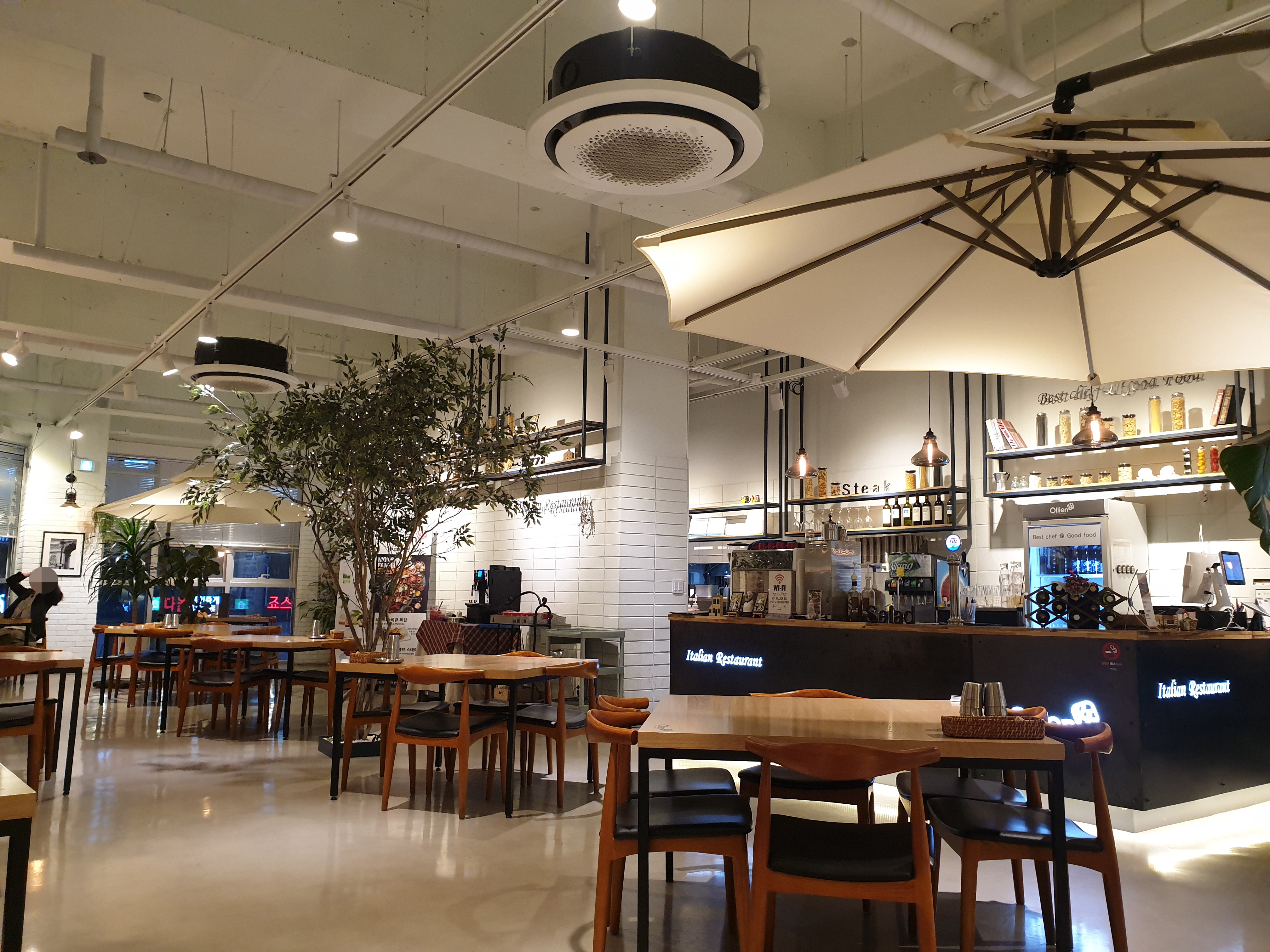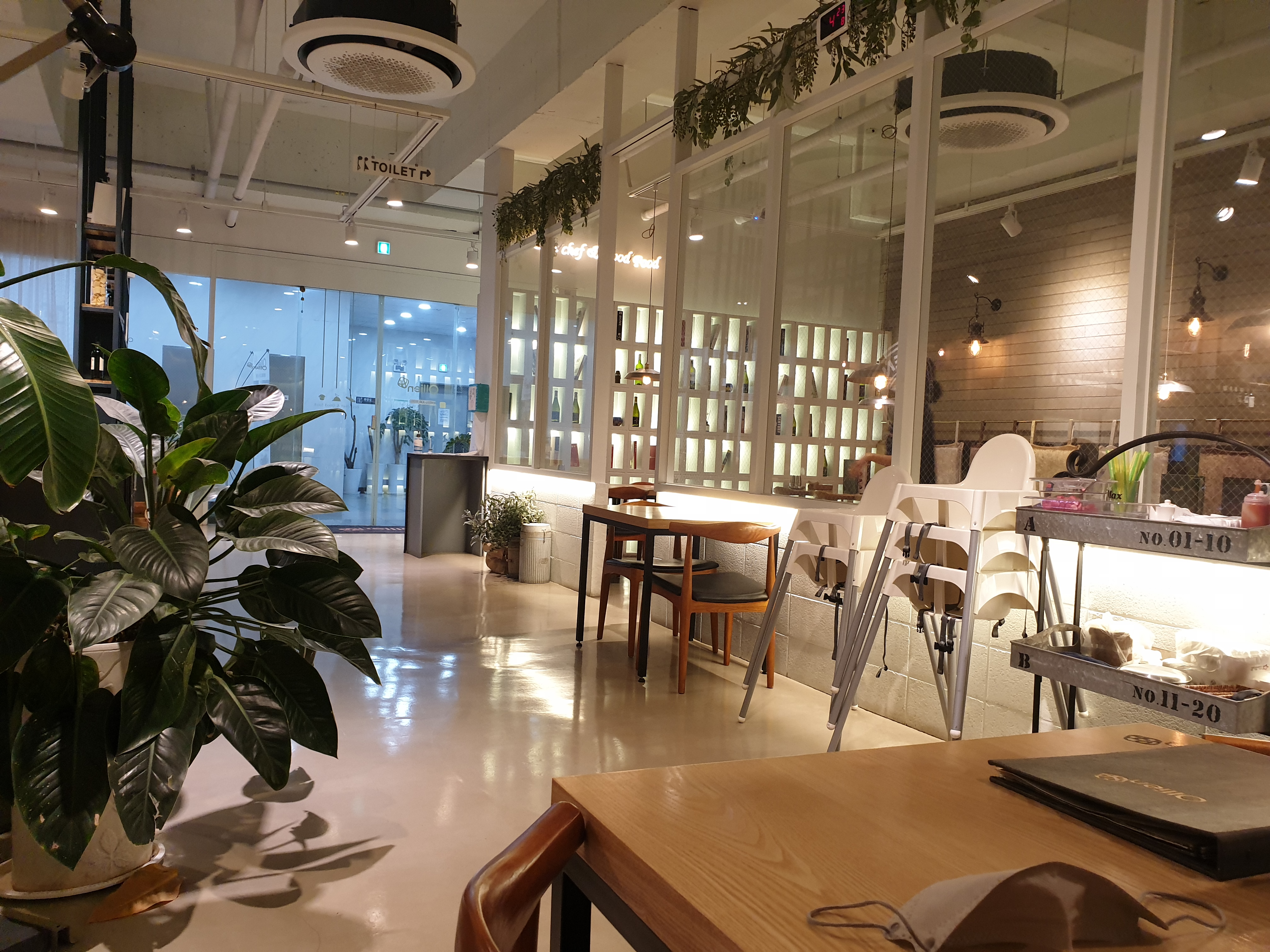 바로 먹으려다가 보니까 Ollien 올리앤 명지대점 내부 시설이 멋져서 사진을 몇 장 찍어봤다.