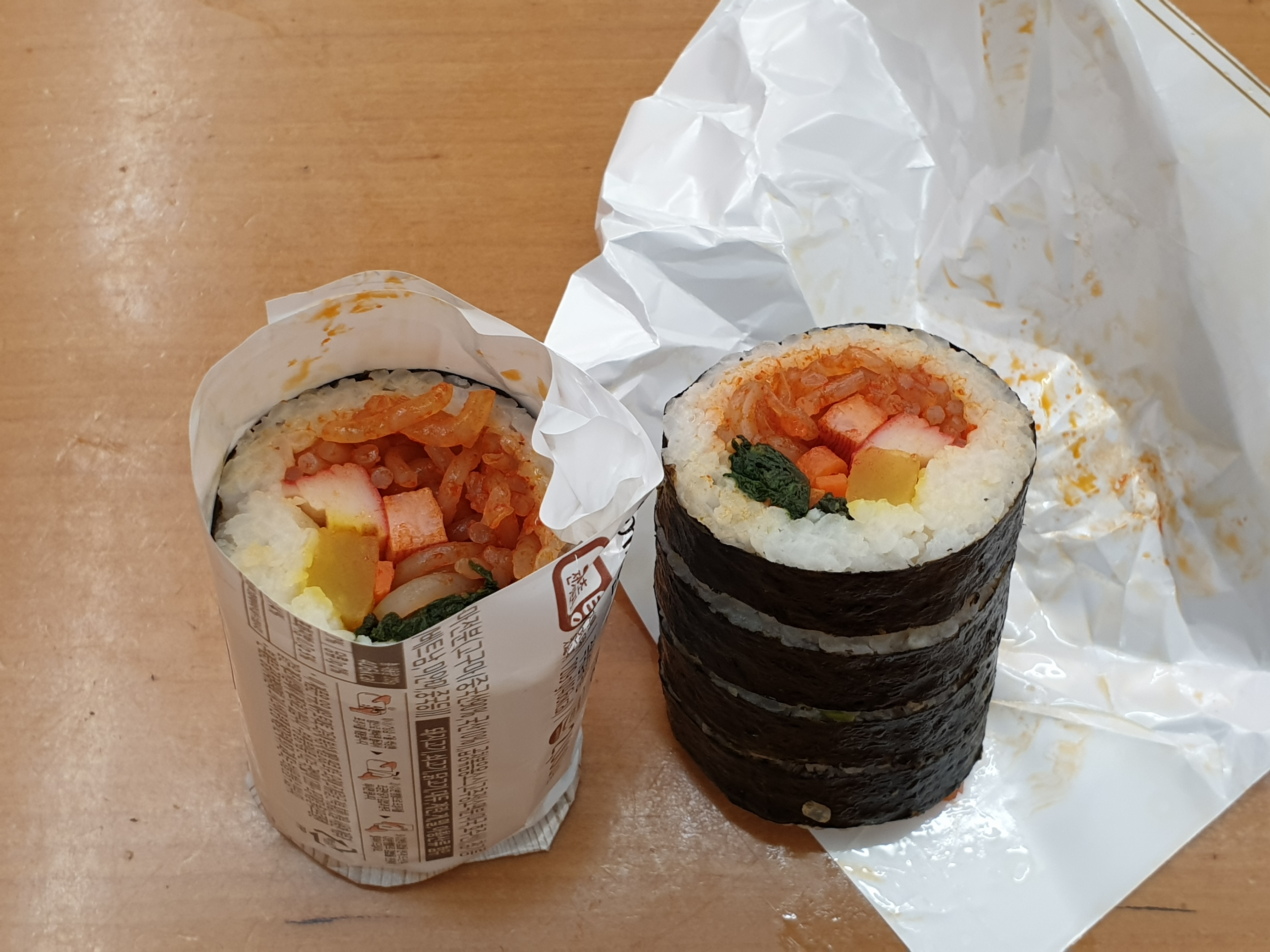 원래는 밥을 먹으려다가 왠지 편의점에 가고 싶어서 GS25와 미니스톱에 들렸고 거기서 먹은 김밥이다.