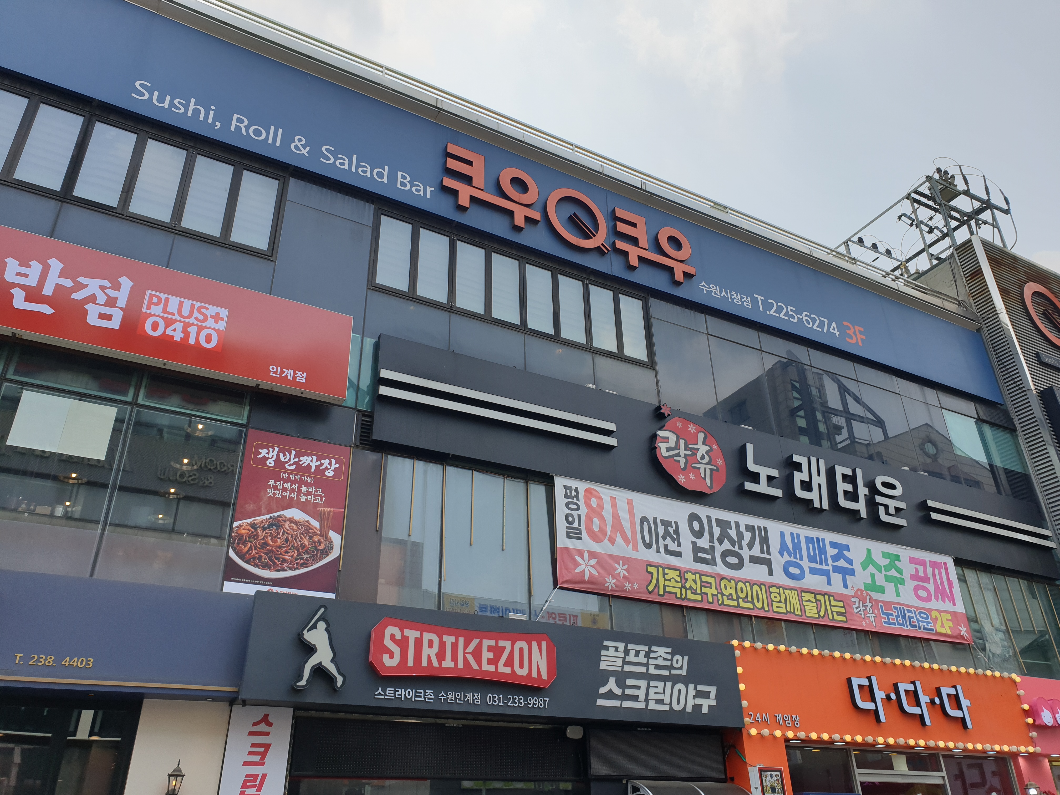 쿠우쿠우 수원시청점 아래엔 홍콩반점과 THE 본갈비가 있다.
