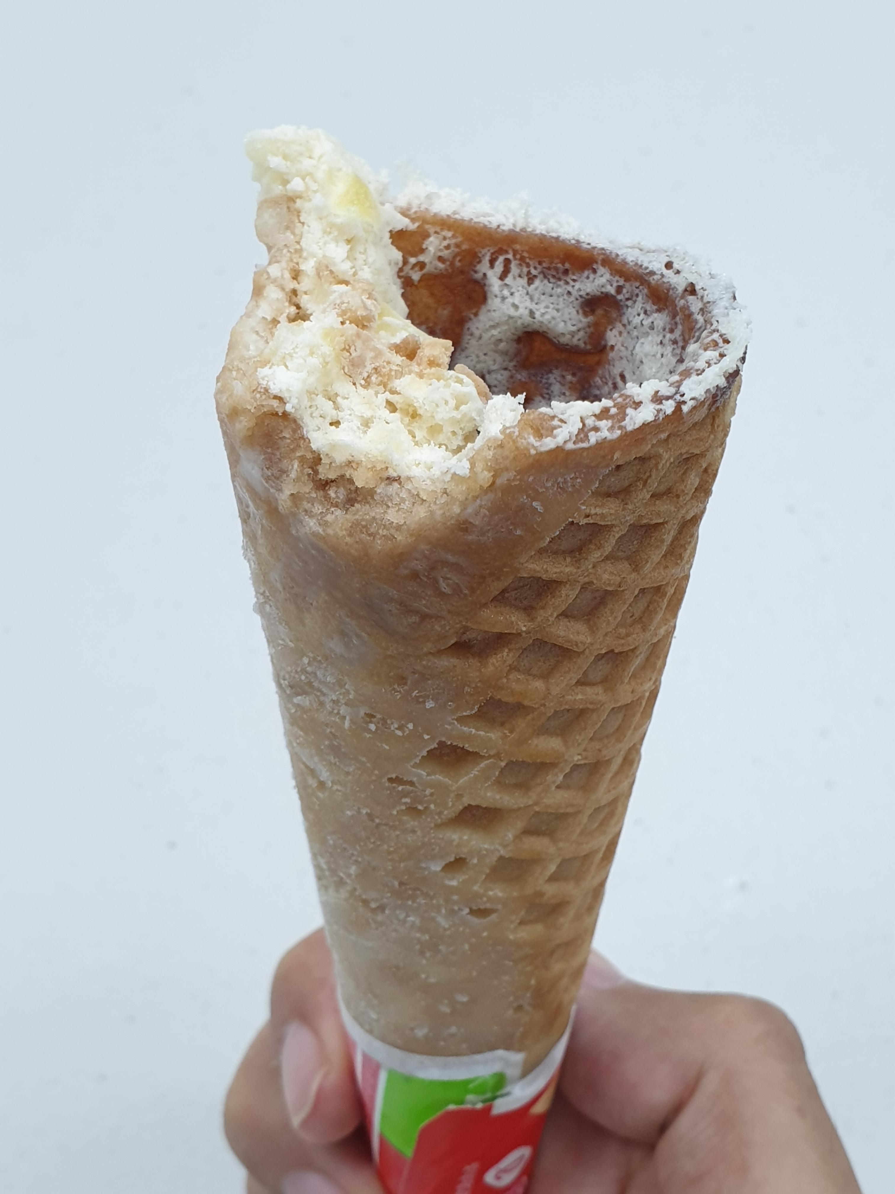 아이스크림을 감싸는 콘이 녹았다 얼어서 식감도 이상하고 같이 먹으니까 두꺼운 종이를 씹는 기분이 들더라;