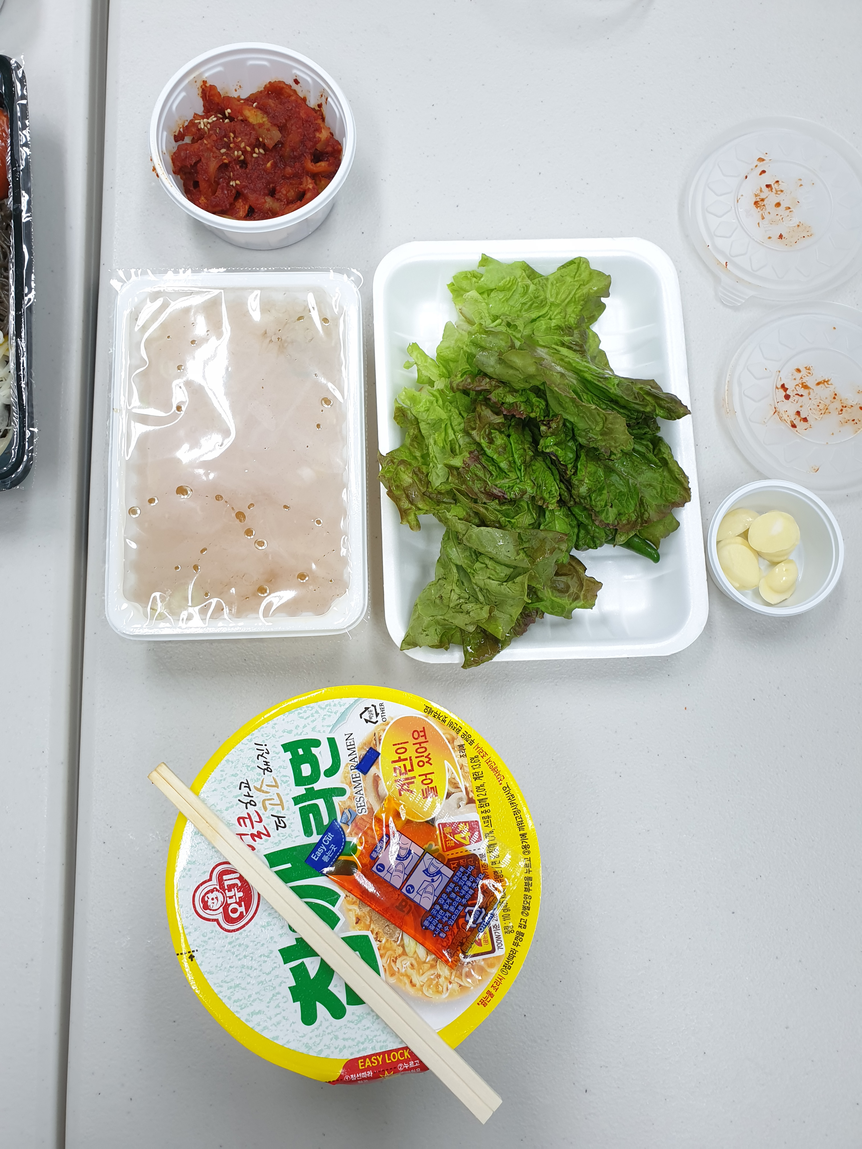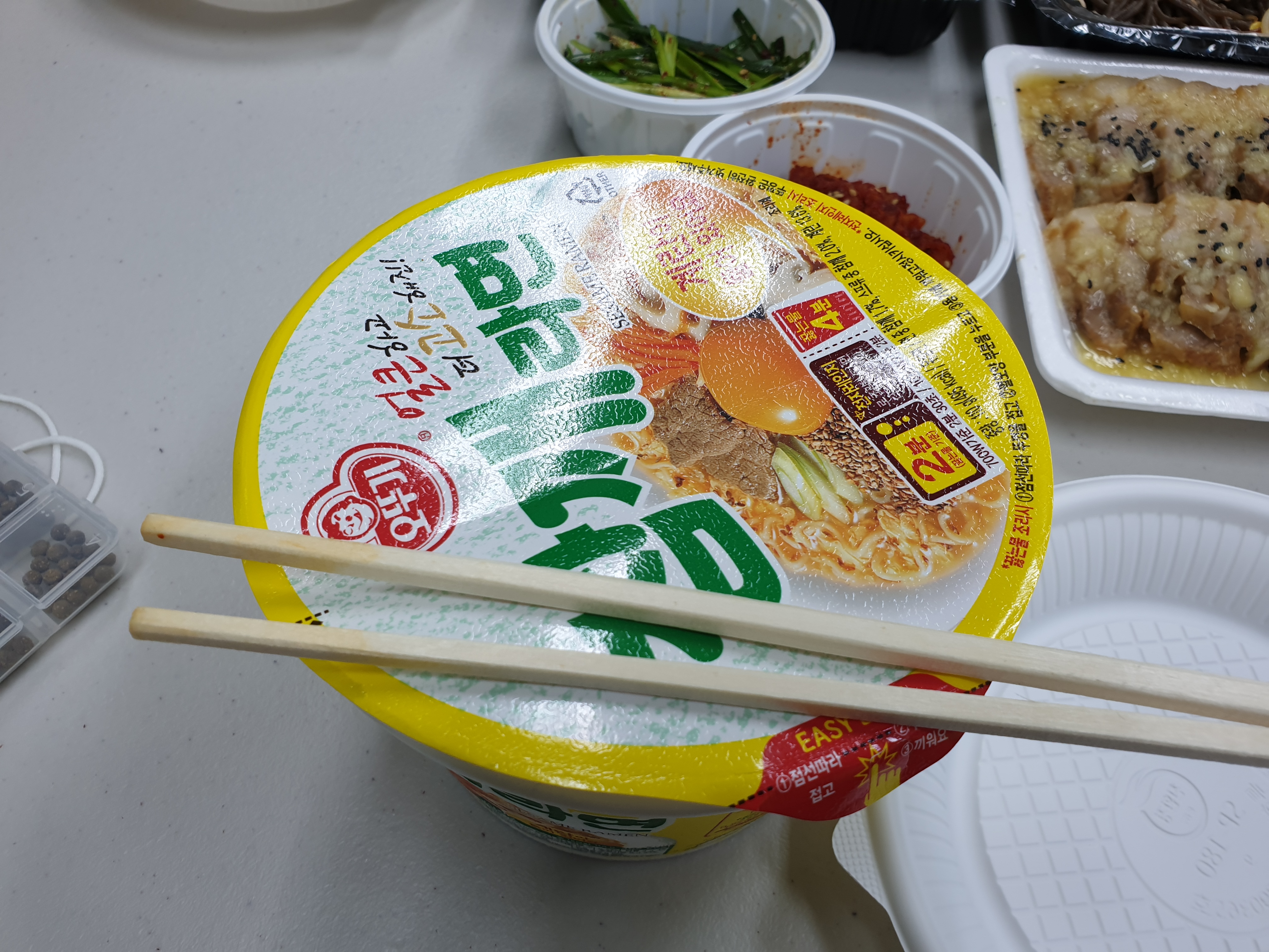 그리고 추가로 다들 오뚜기 참깨라면 컵라면도 하나씩 먹었는데