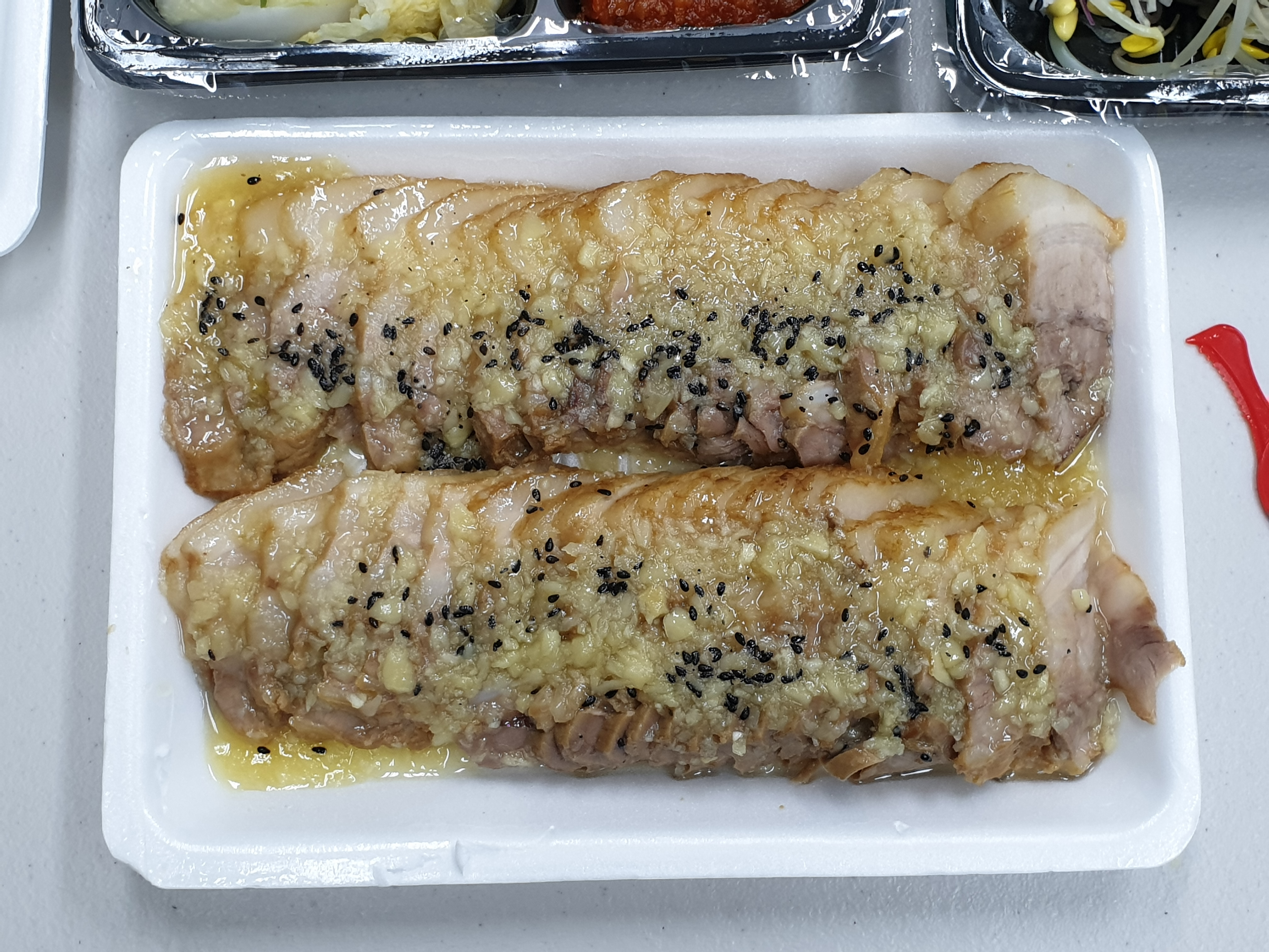 마늘보쌈 위엔 마늘 소스가 듬뿍 올라가 있어서 꽤 먹음직스러워 보이더라