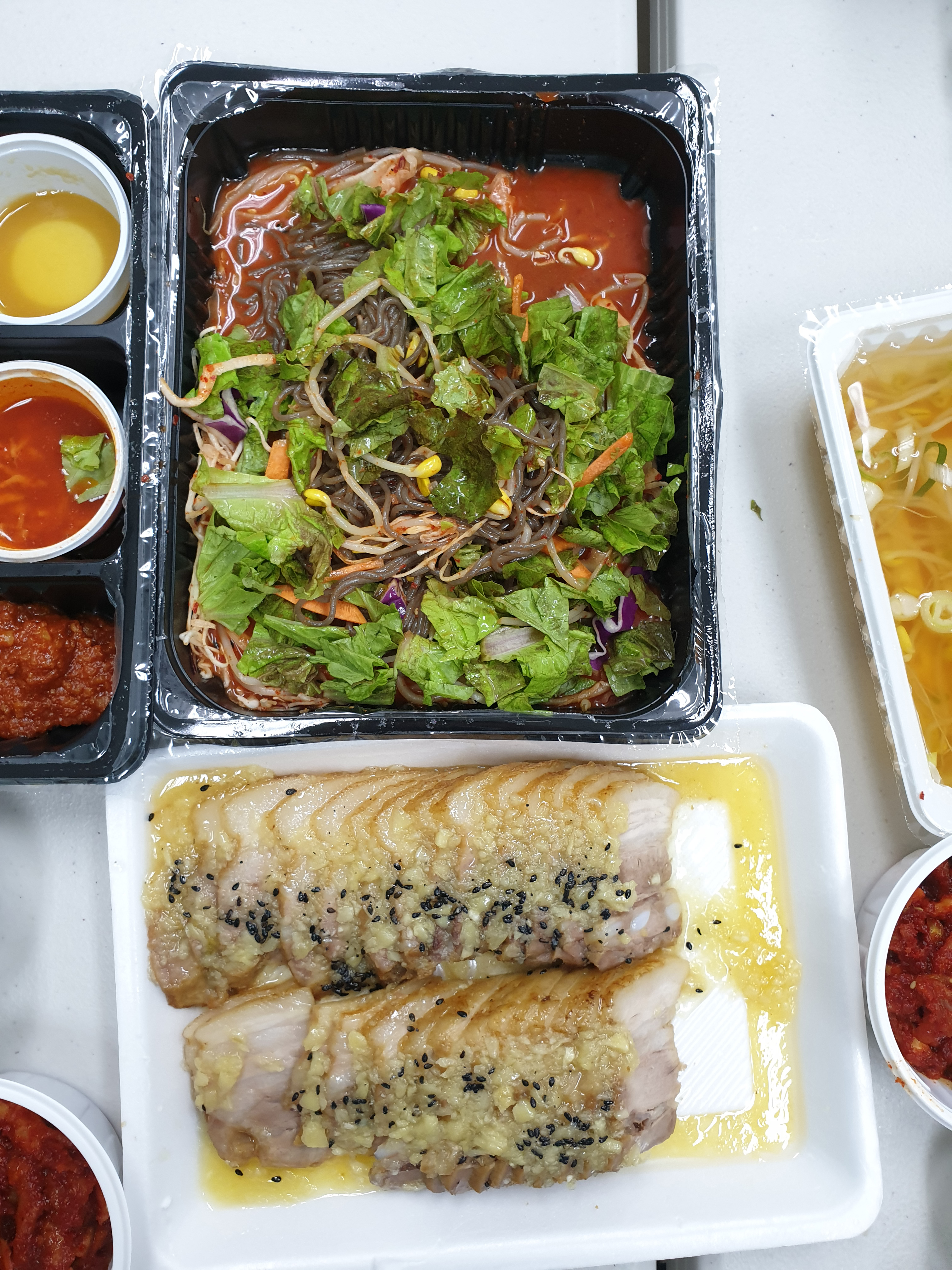뭘 먹을지 고민하다가 보쌈과 막국수를 먹기로 결정했다.