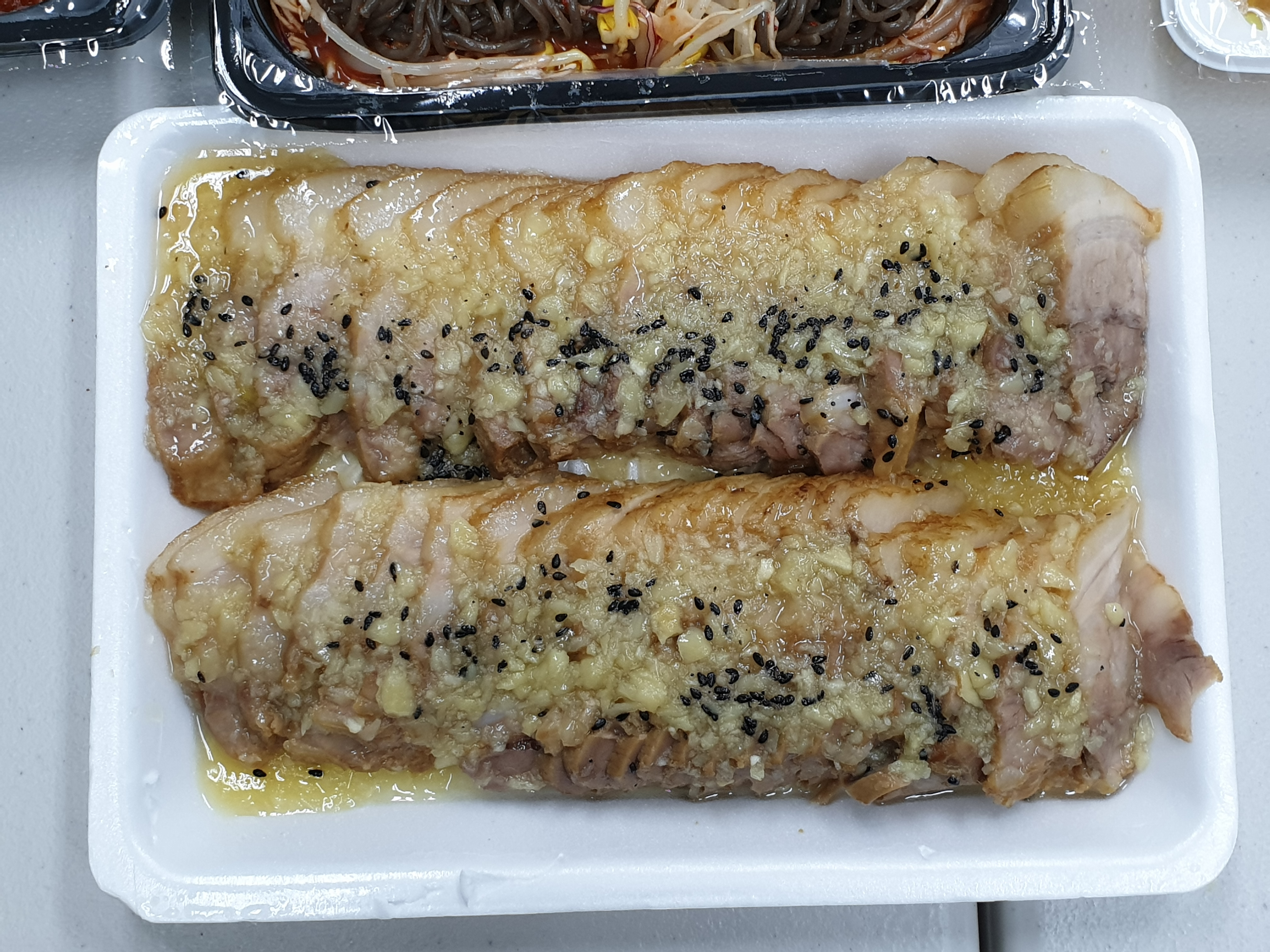 주문한 음식은 마늘보쌈과 막국수 대짜