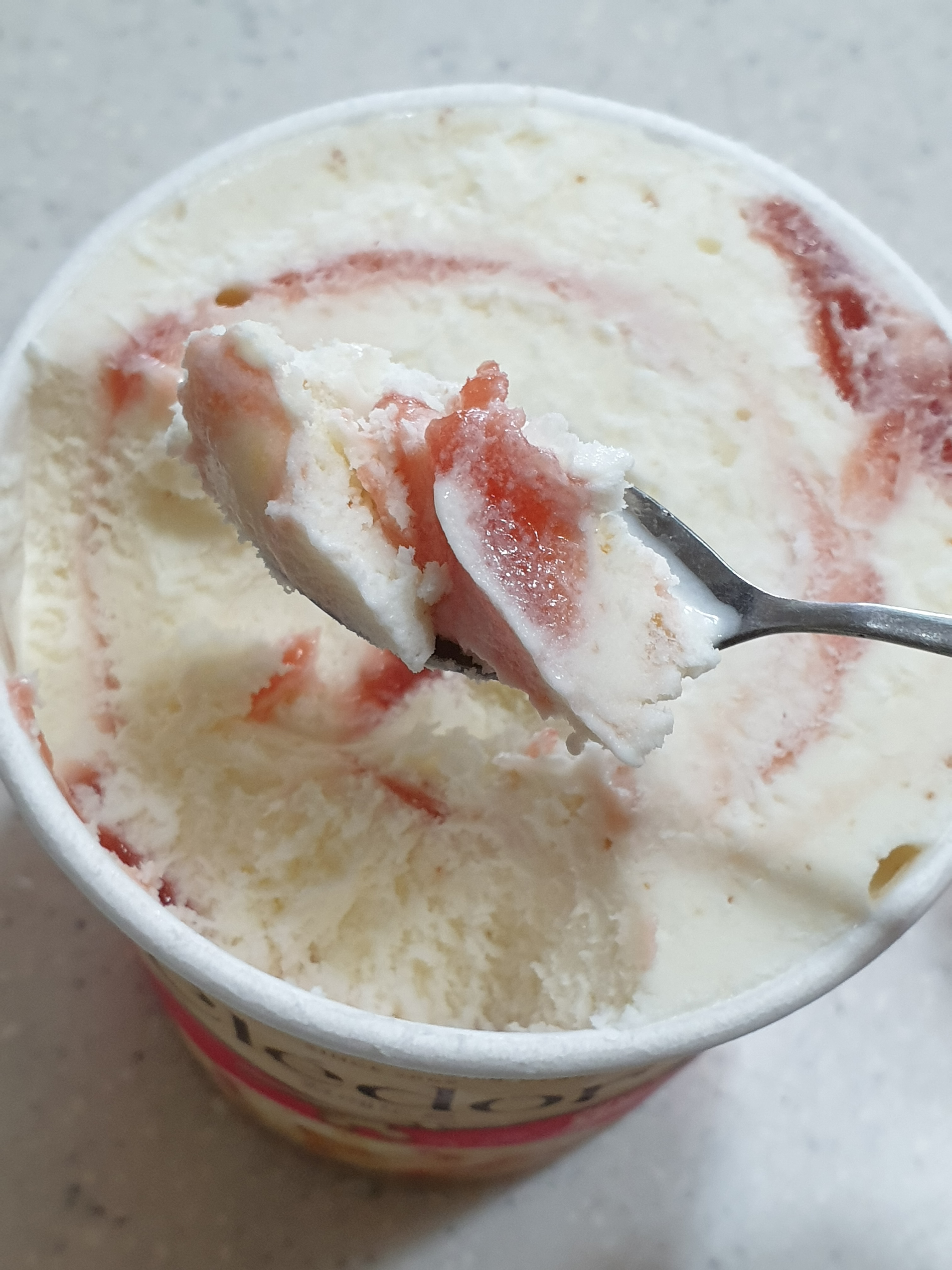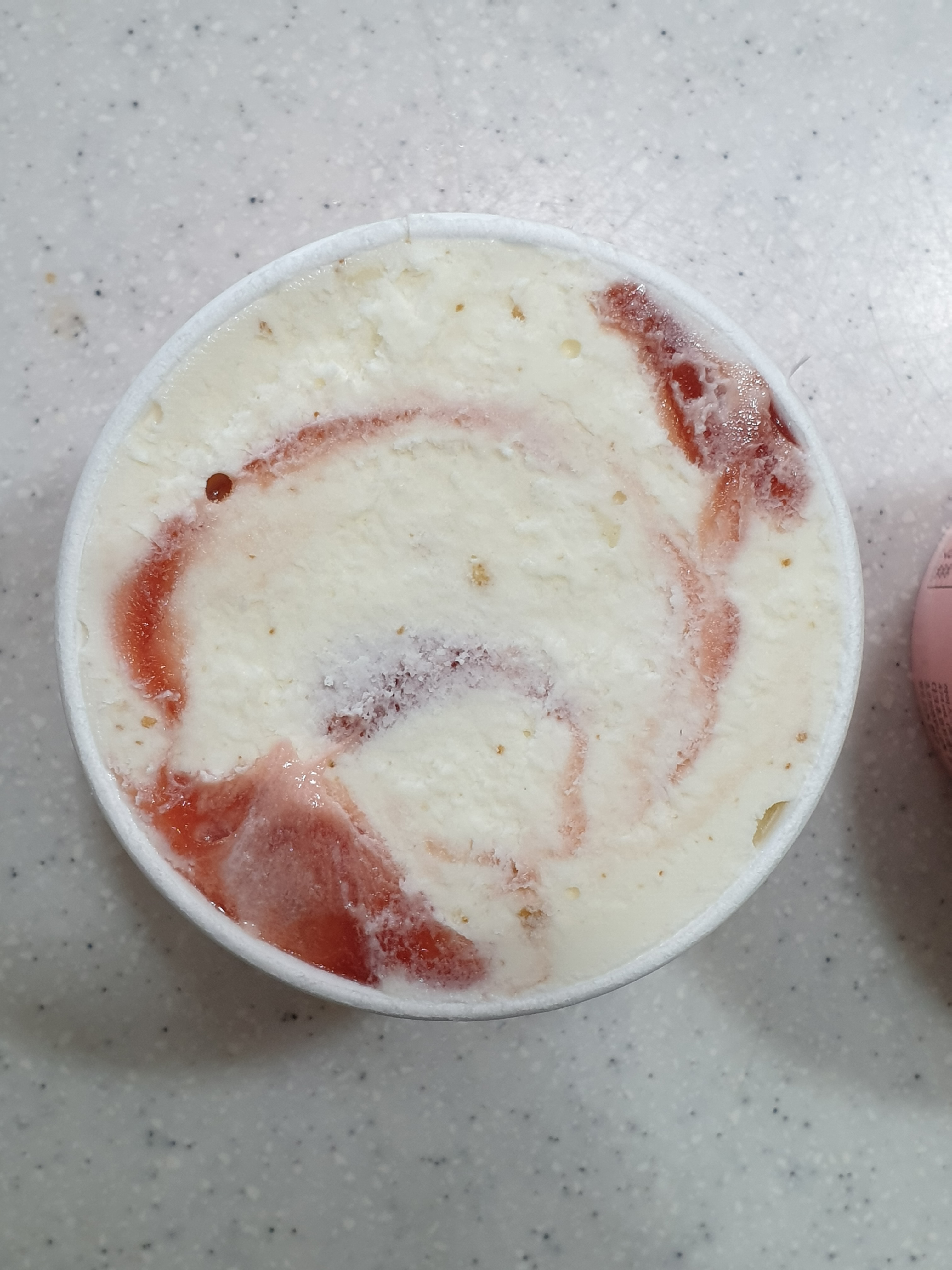 안에 작은 치즈 큐브가 박혀 있고 거기에 딸기 시럽이 들어 있는 데다 치즈랑 딸기의 궁합이 괜찮아서 자꾸만 손이 가네