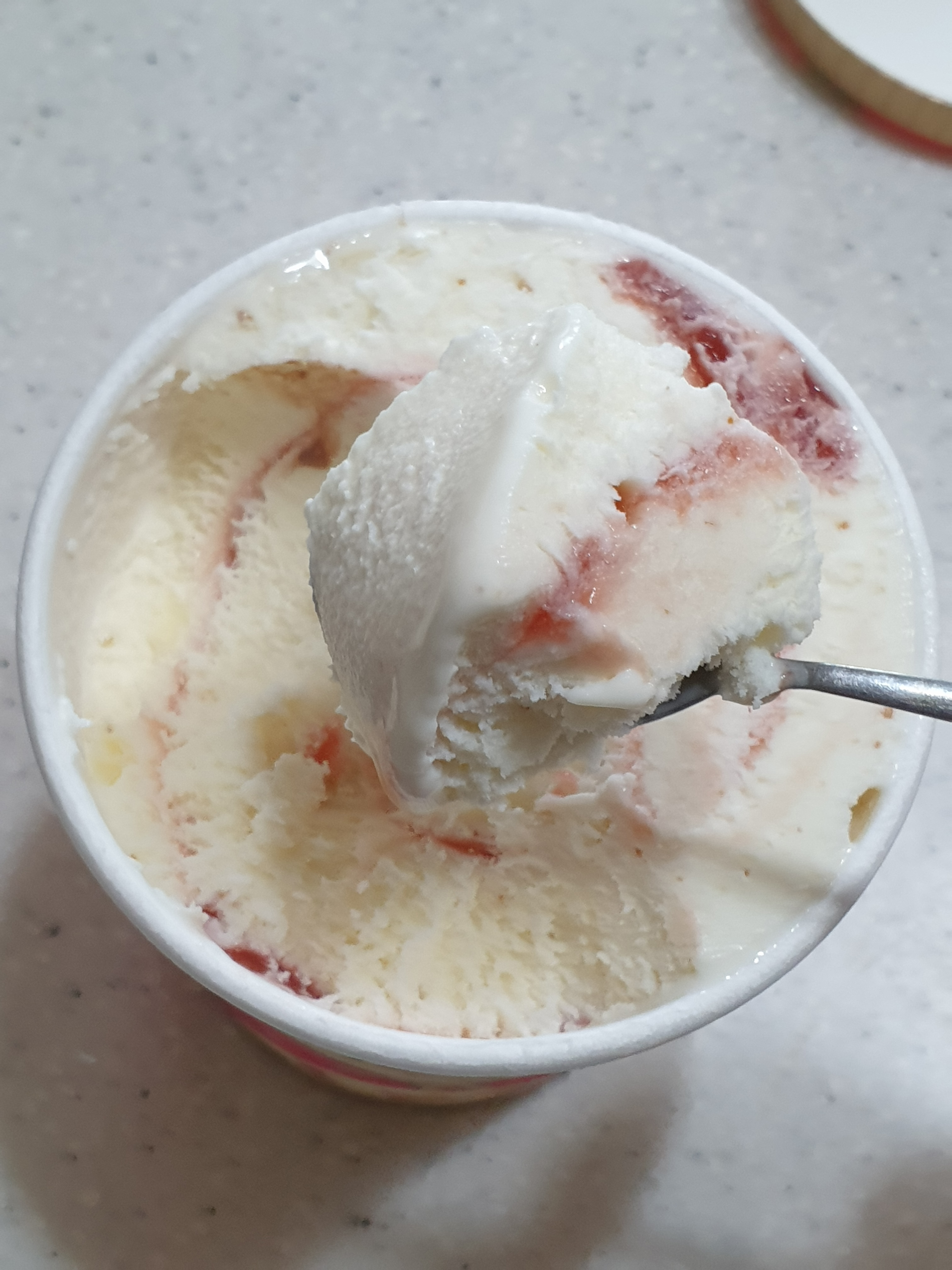 오! 확실히 일반 컵 아이스크림에 비해 조금 더 고급스러운 맛이다.