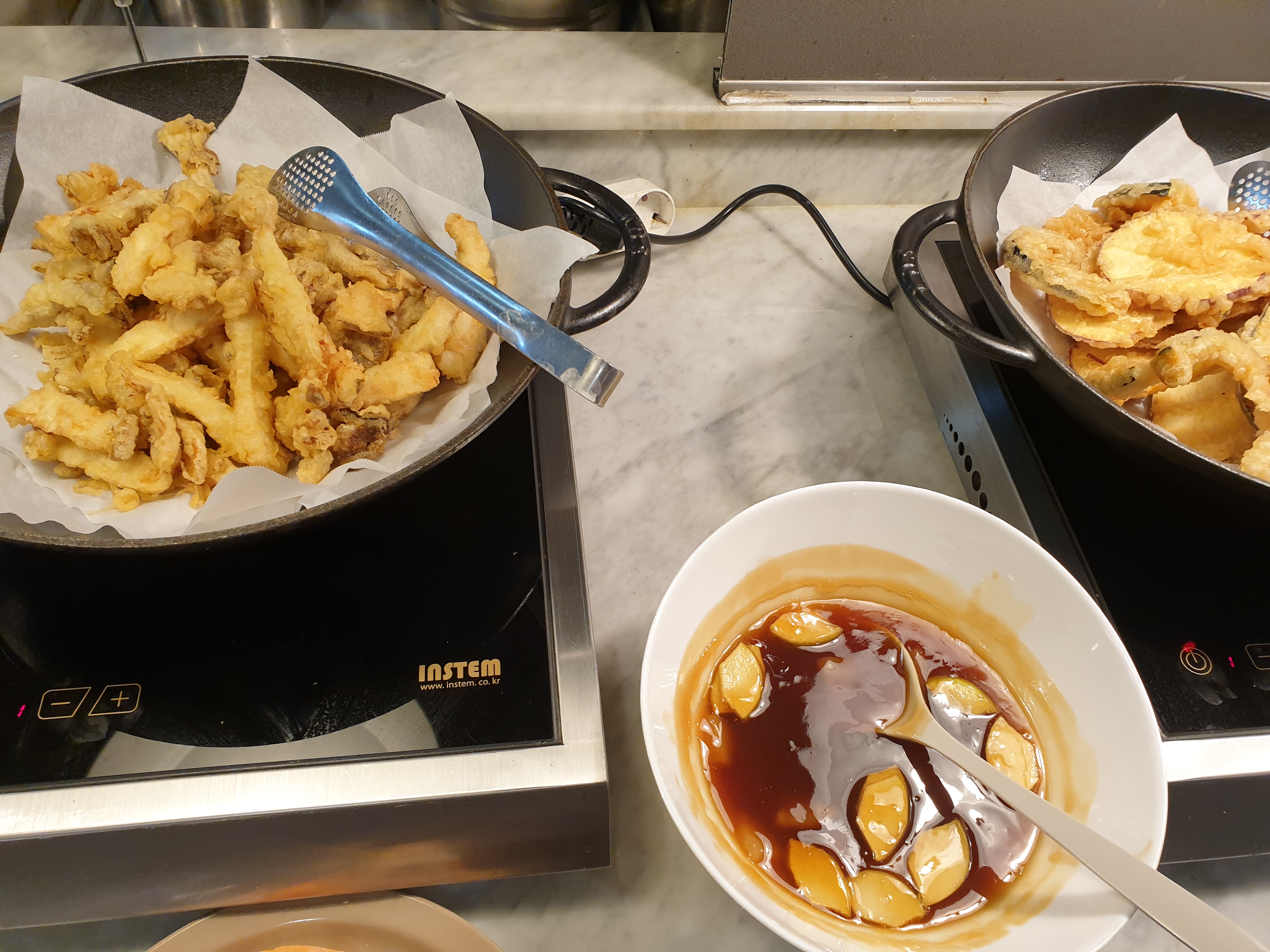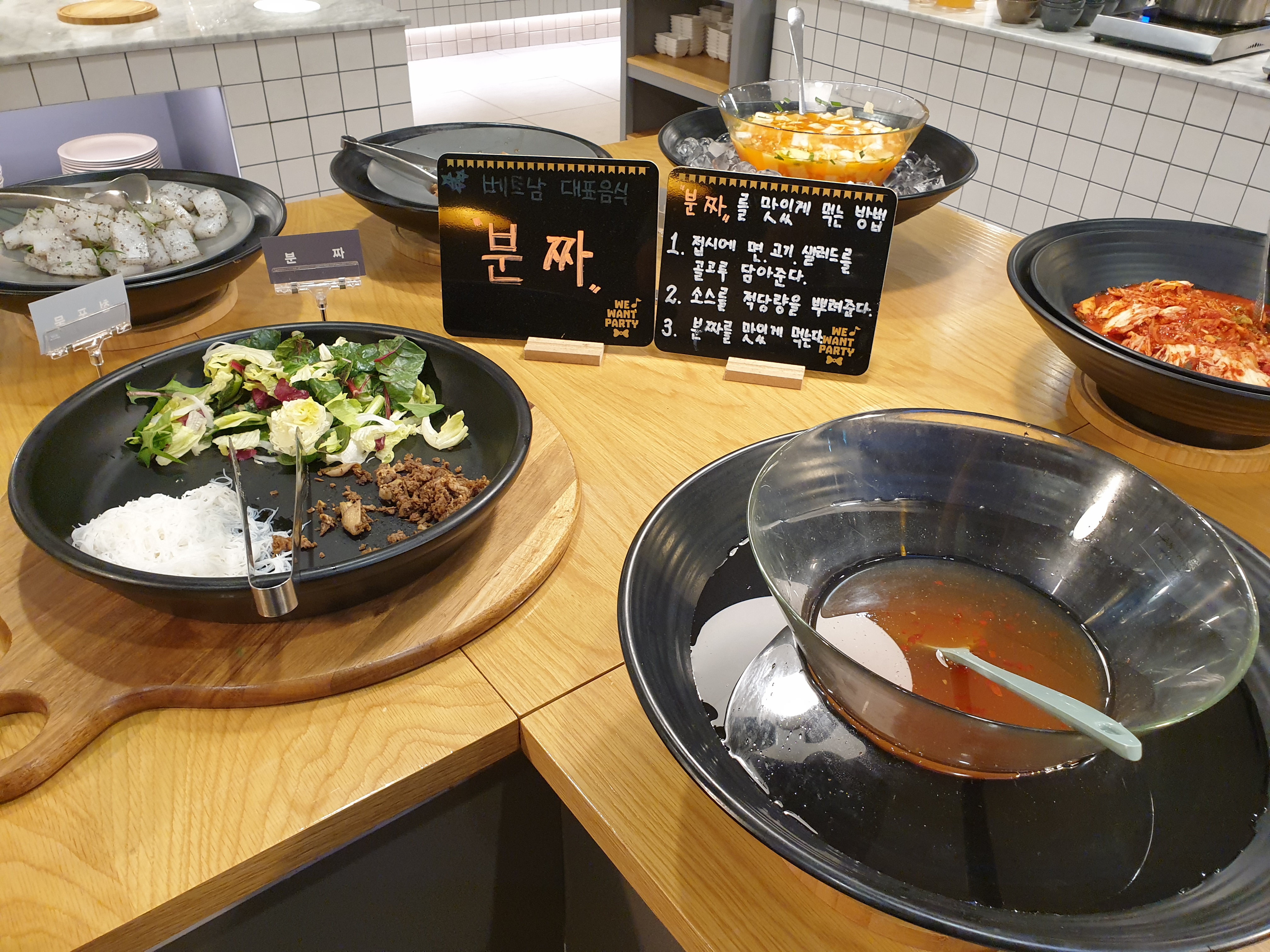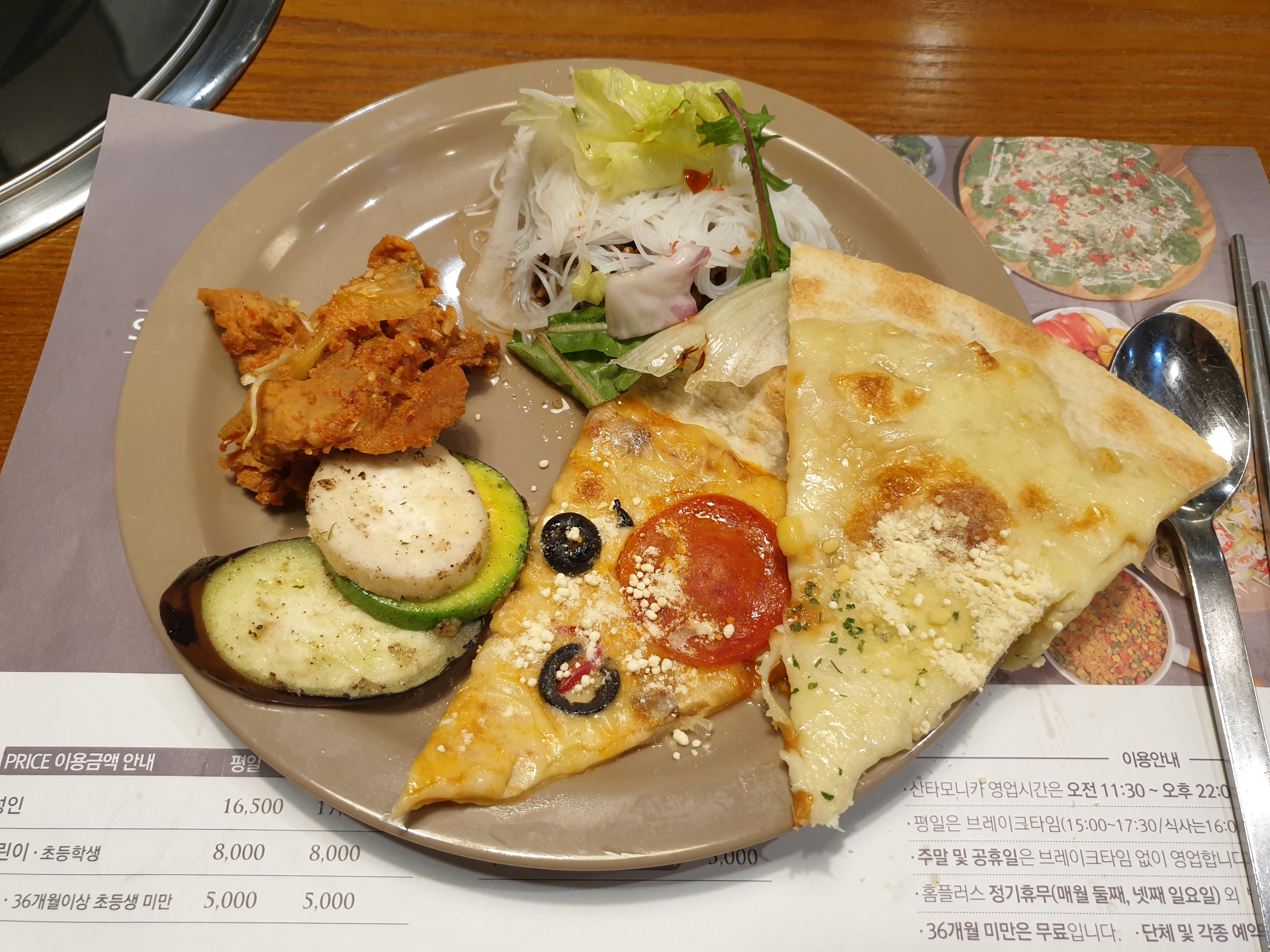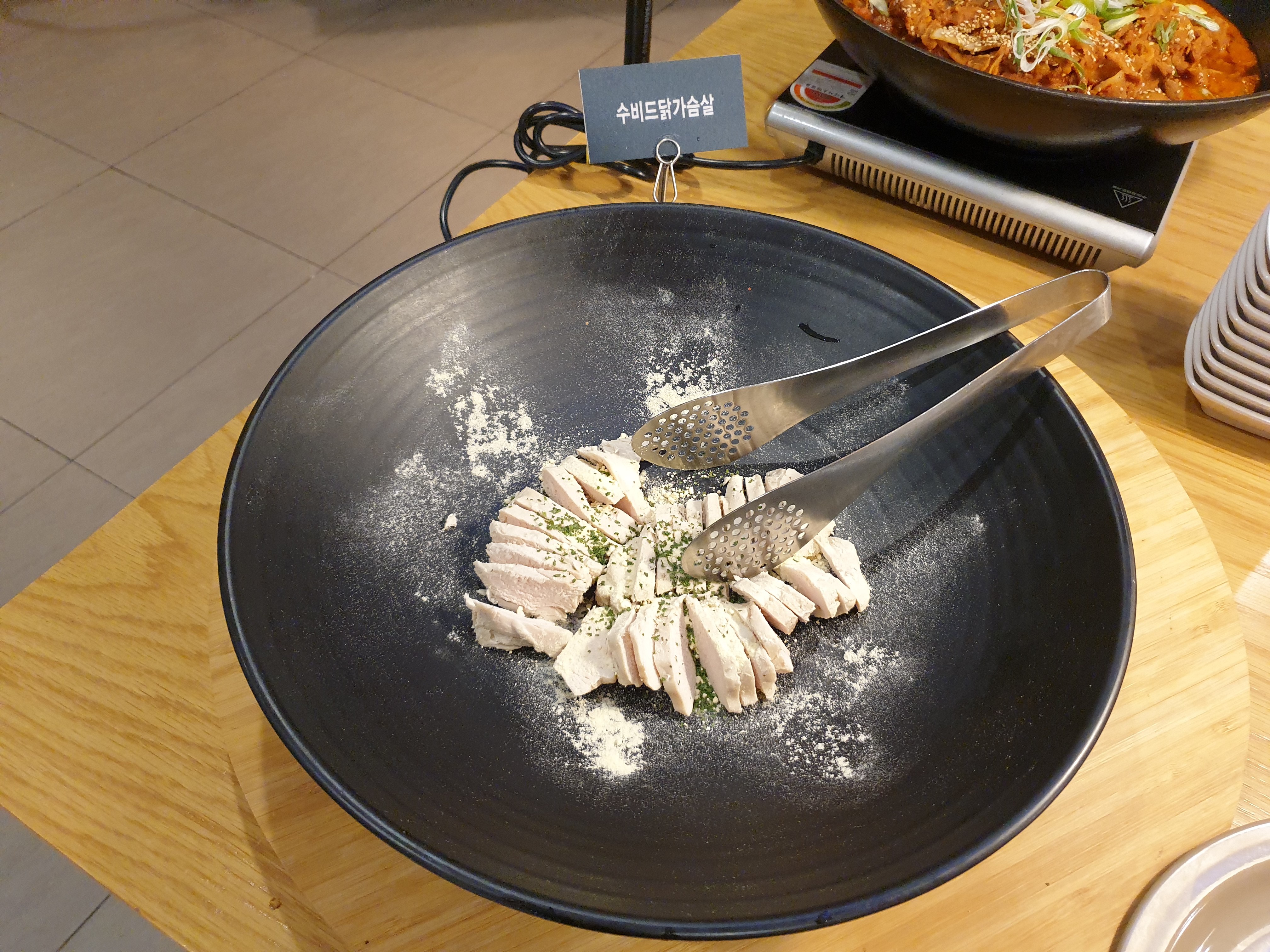 샐러드바에 가서 여러 음식을 덜어가지고 와서 먹었는데 맛이 꽤 괜찮더라