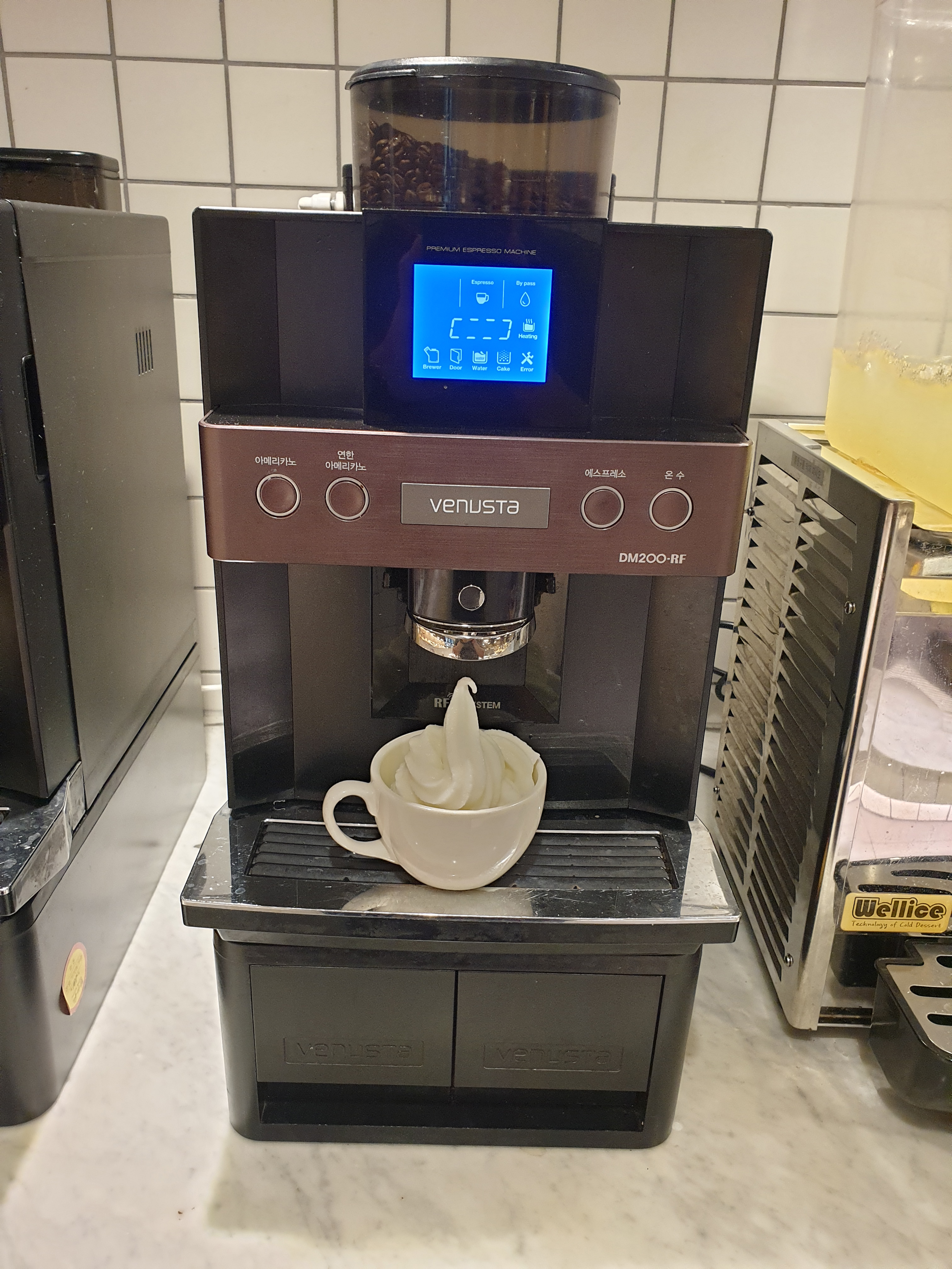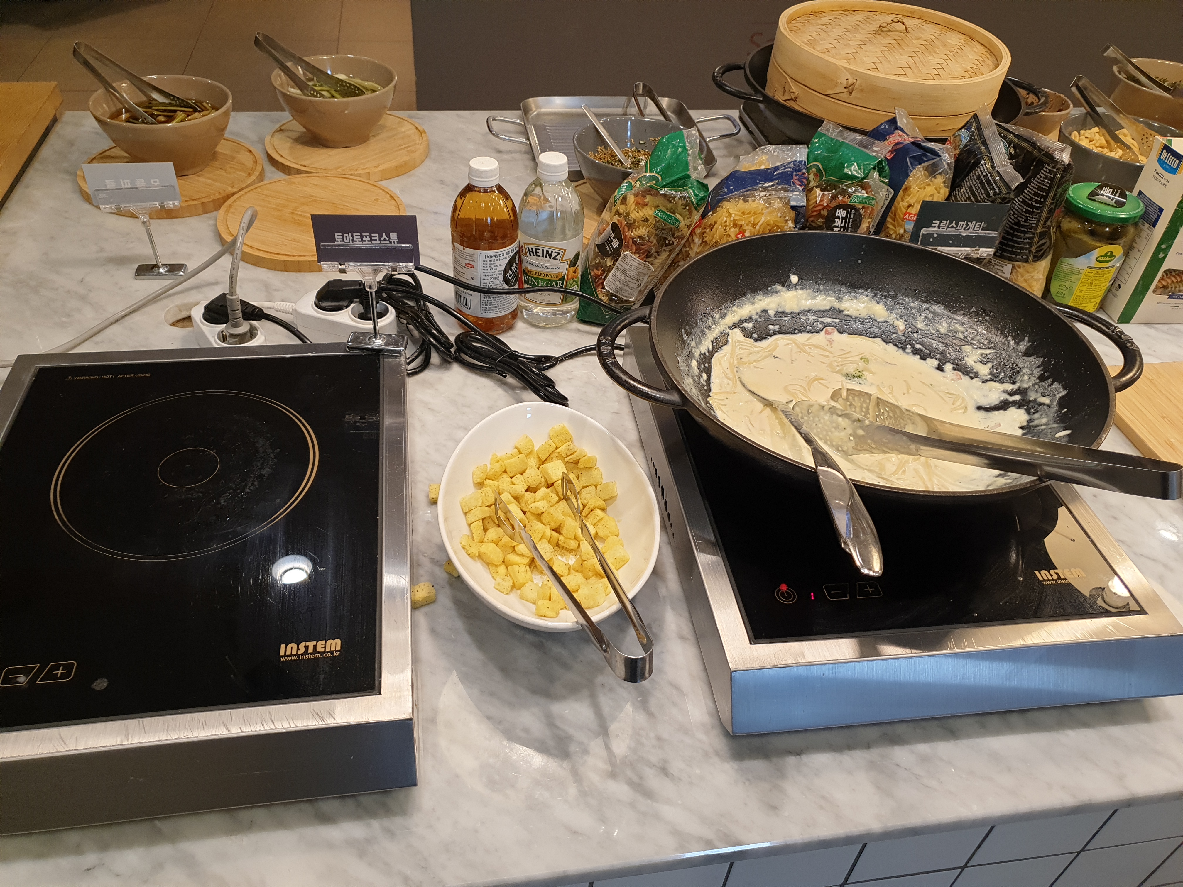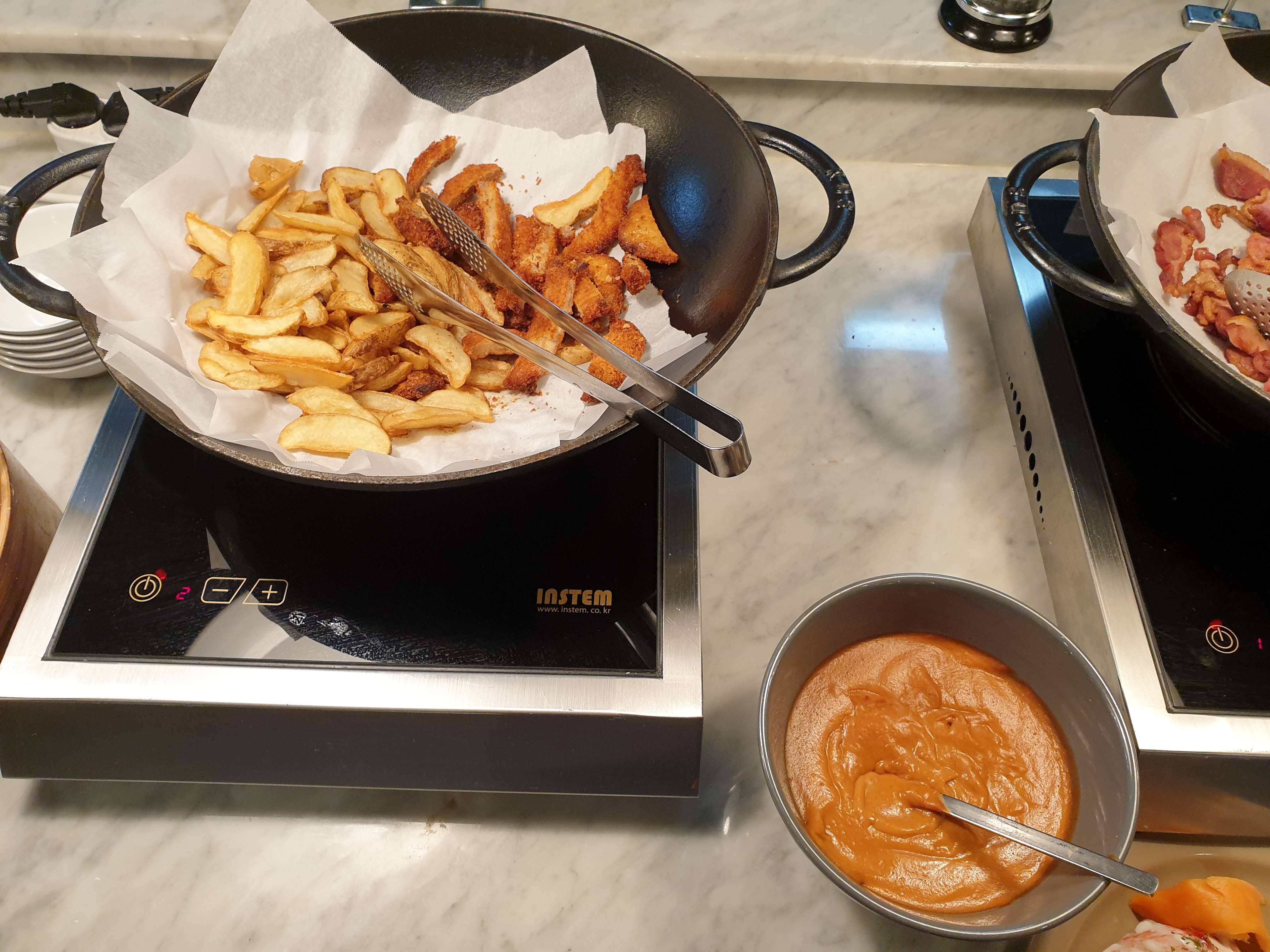 디저트로는 와플이 있고 추가로 빵을 데워 먹을 수 있게 만들어 놨다.