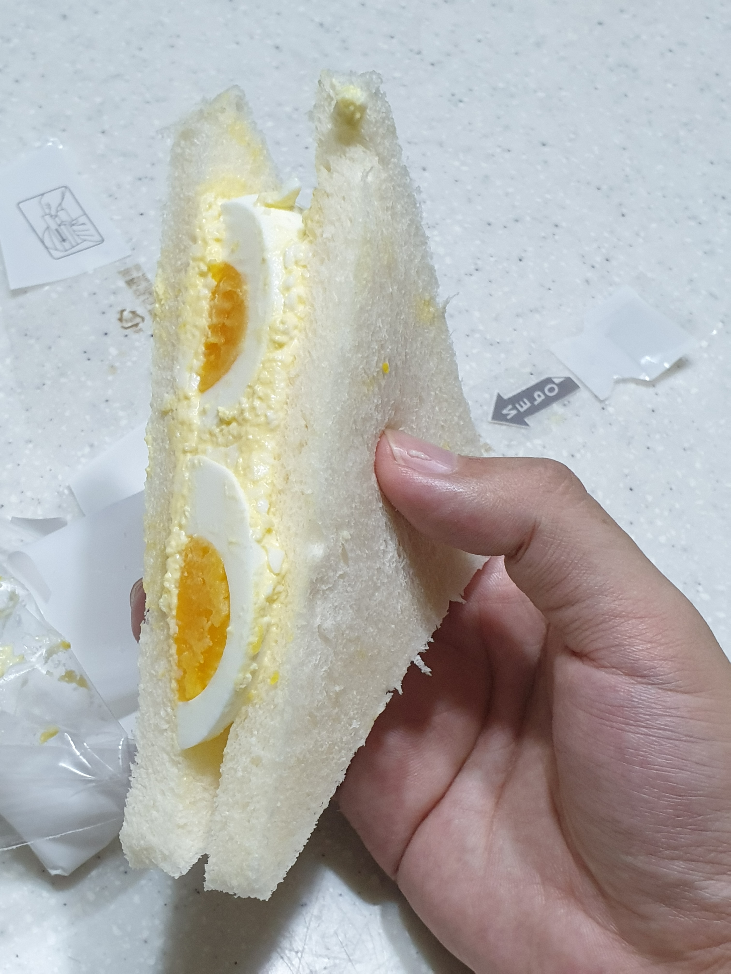 이렇게 맛있어 보이는 반숙란 샌드위치가 나온다.
