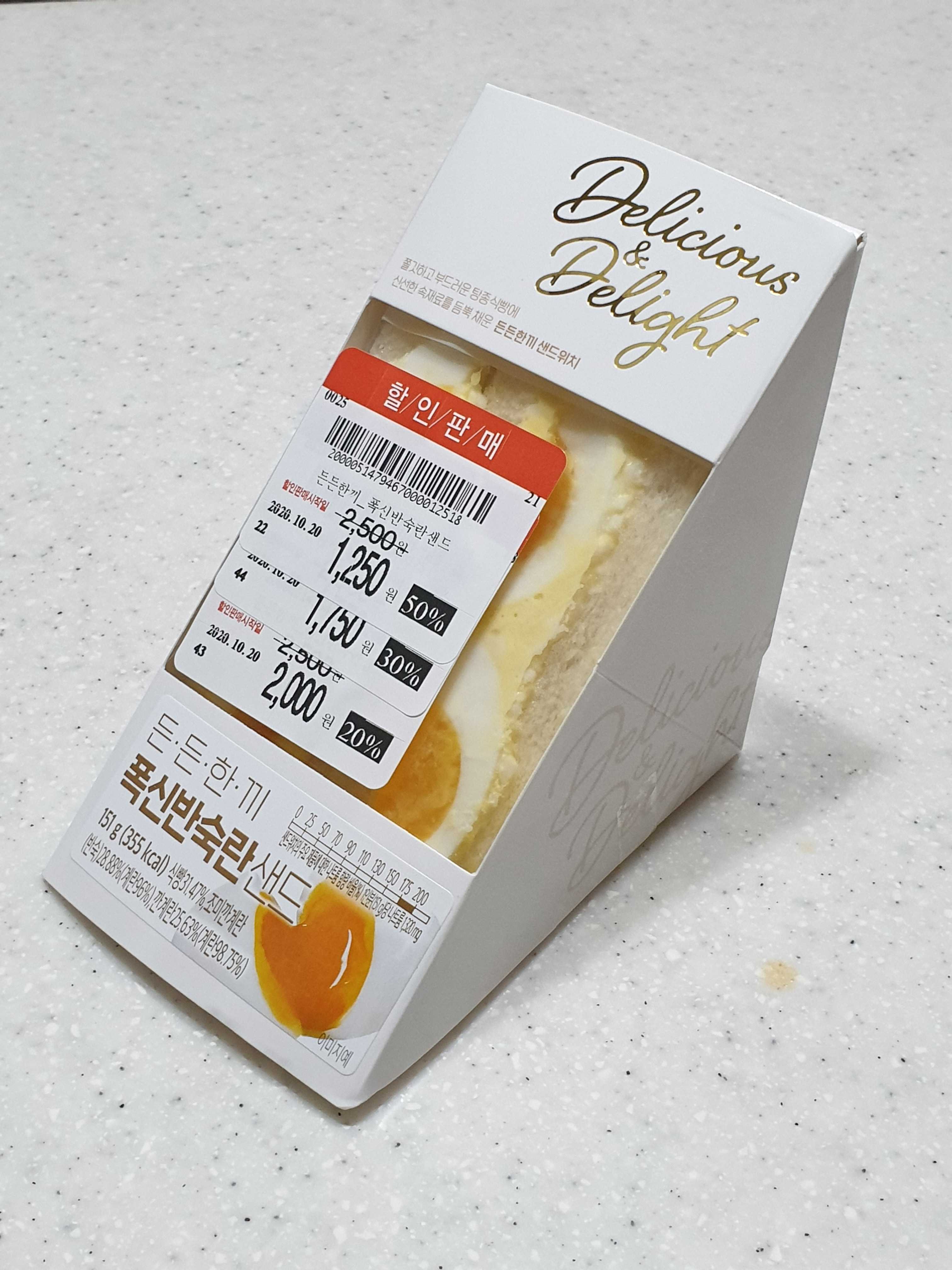 1. 홈플러스 든든한끼 폭신반숙란 샌드위치
