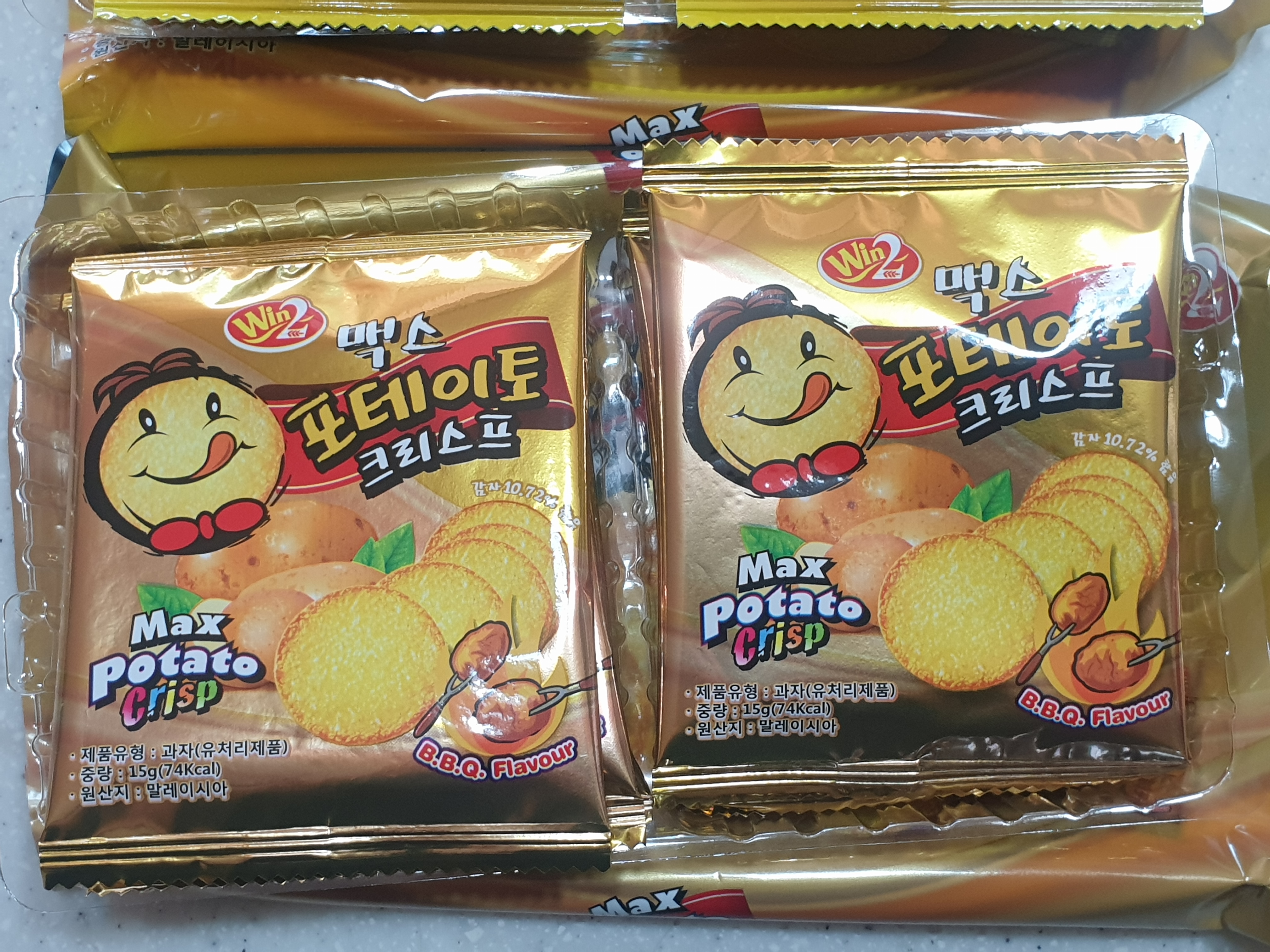 그런데 이름인 맥스 포테이토 크리스프라는 걸 보고 감자칩을 생각하고 산건데 막상 먹으려고 꺼내보니까 이건 감자칩 같은 과자가 아니라 감자 과자라고 해야겠더라