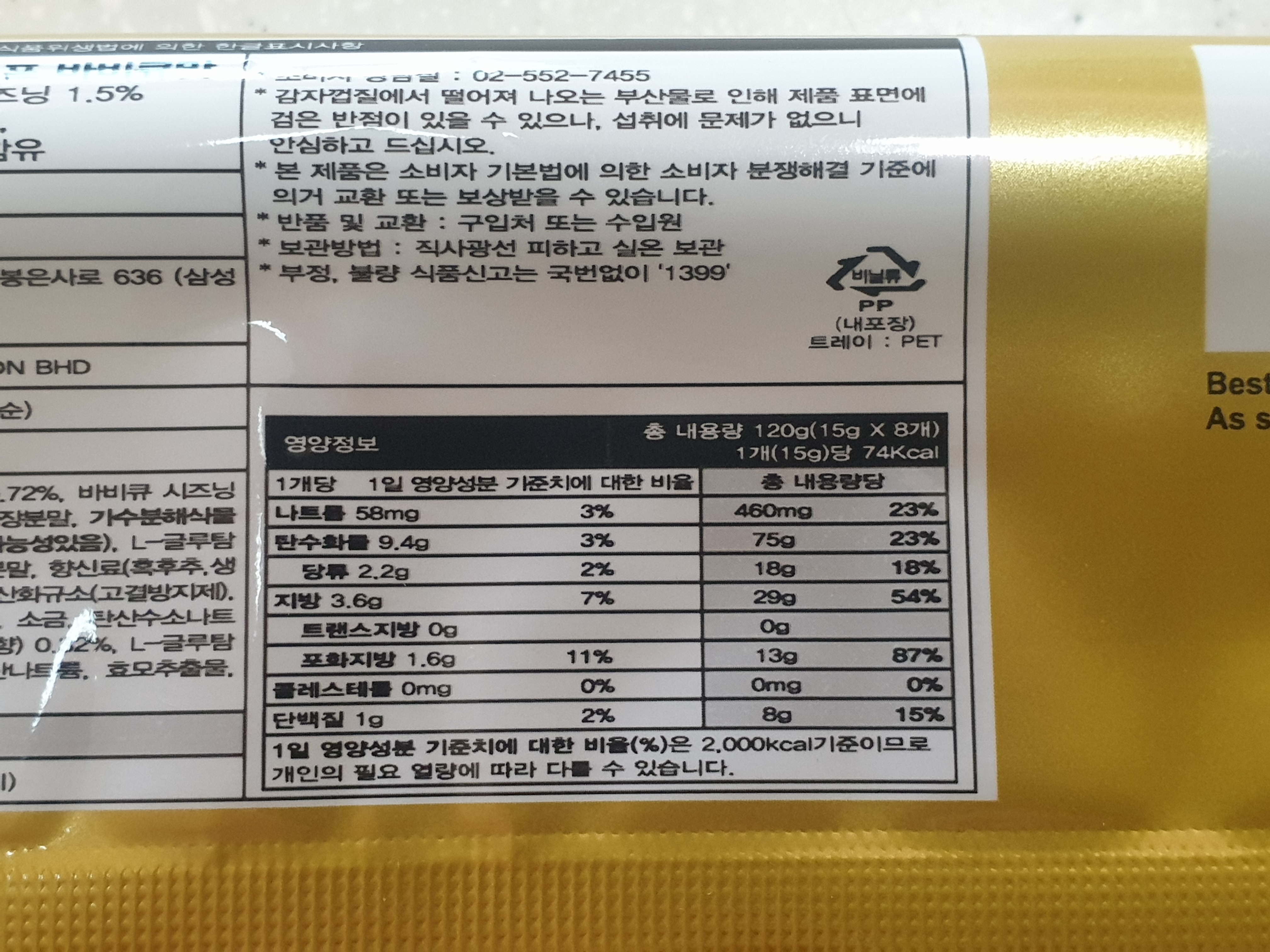 그런데 바비큐 맛이 아무래도 더 칼로리가 높을 거라고 생각했는데 좀 의외네